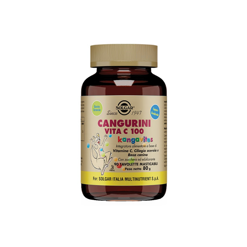 IngredientiSaccarosio, fruttosio, vitamina C (L-ascorbato di sodio); agente di carica: cellulosa microcristallina; vitamina C (acido L-ascorbico), succo di carota liofilizzato; edulcorante: mannitolo; aroma naturale: arancia liofilizzata; maltodestrina da mais; edulcorante: xilitolo; agenti antiagglomeranti: acido stearico vegetale, biossido di silicio; addensante: carragenina; ciliegia acerola (Malpighia glabra L.) e.s. (4:1) di frutto; addensante: gomma di xanthan; agente antiagglomerante: magnesio stearato vegetale; rosa canina (Rosa canina L.) frutto polverizzato; agente di carica: idrossi-propil-metilcellulosa.