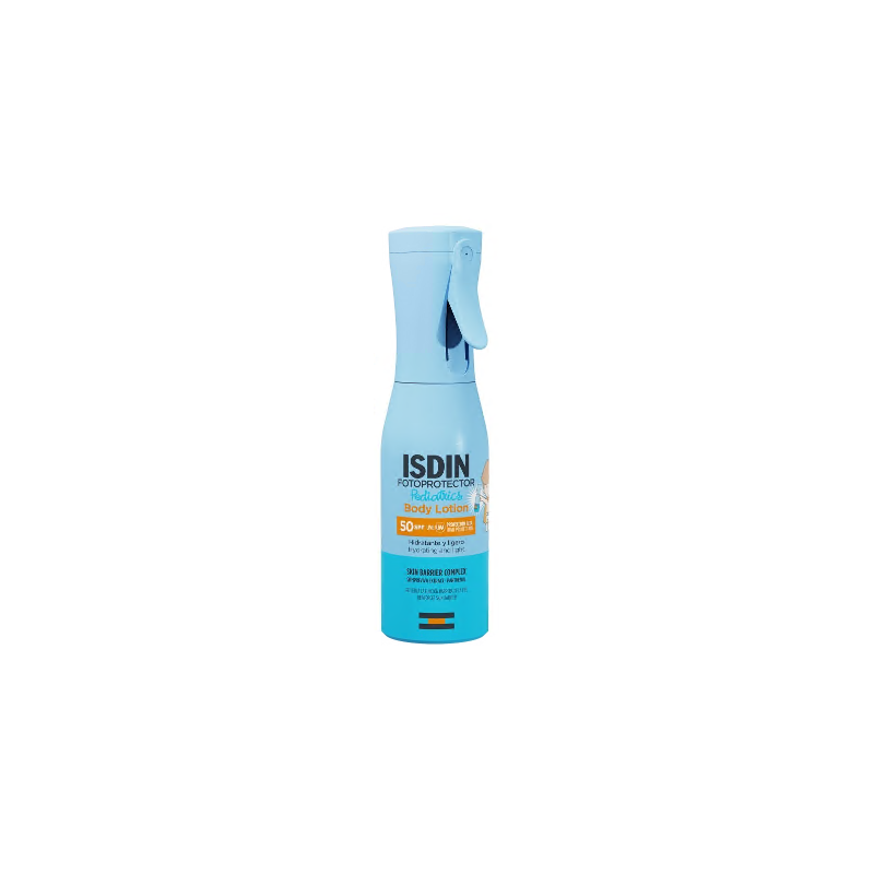 Fotoprotettore corpo leggero in spray per bambini a partire dai 6 mesi che idrata intensamente la pelle. Il suo diffusore spray fornisce un'applicazione localizzata, facile e comoda, senza residui grassi. Con SKIN BARRIER COMPLEX, che combina SIEMPREVIVA extract, un ingrediente di origine naturale, e Pantenolo, che aiutano a rafforzare la funzione barriera della pelle. Idratante e leggero. Con vitamina E. Molto resistente all'acqua. Resistente allo sfregamento. Assorbimento ed asciugatura immediati. Adatto per l'applicazione sulla pelle umida (WET SKIN). Mineral Oil-free. Adatto a tutte le tipologie di pelle, compresa la pelle sensibile e atopica. Testato sotto controllo dermatologico e pediatrico. Protezione solare. Protezione UVB e UVA. Protezione alta. SPF (Sun Protection Factor) 50 (metodo ISO).
